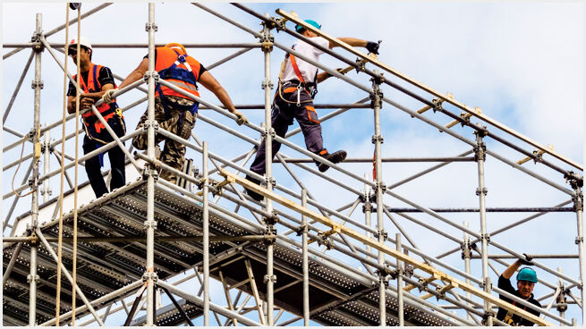 足場とは、建物の清掃、建築、または修理作業中に作業員が使用する一時的な構造物で、建物の内側または外側に設置されます。足場は通常、木製の板やアルミニウムや鋼鉄などの金属製のポールで構成されています。これらは主に建設現場で使用され、高所や通常では到達が難しい場所へのアクセスを容易にするために活用されます。足場は、ステージングシステム、グリッドシステム、移動式ステージ、支持構造物、観客席、バリケードの設置にも広く利用されています。